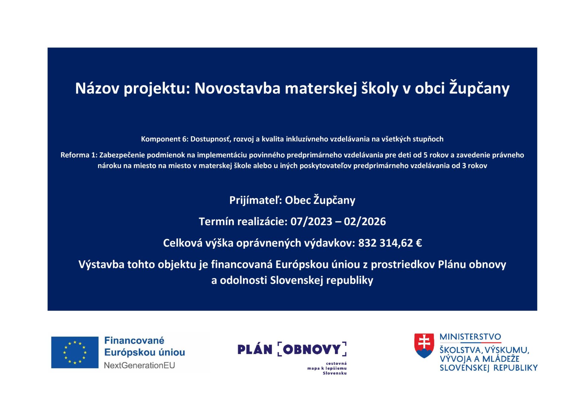 Výška dotácie je vo výške 832 314,62 €.